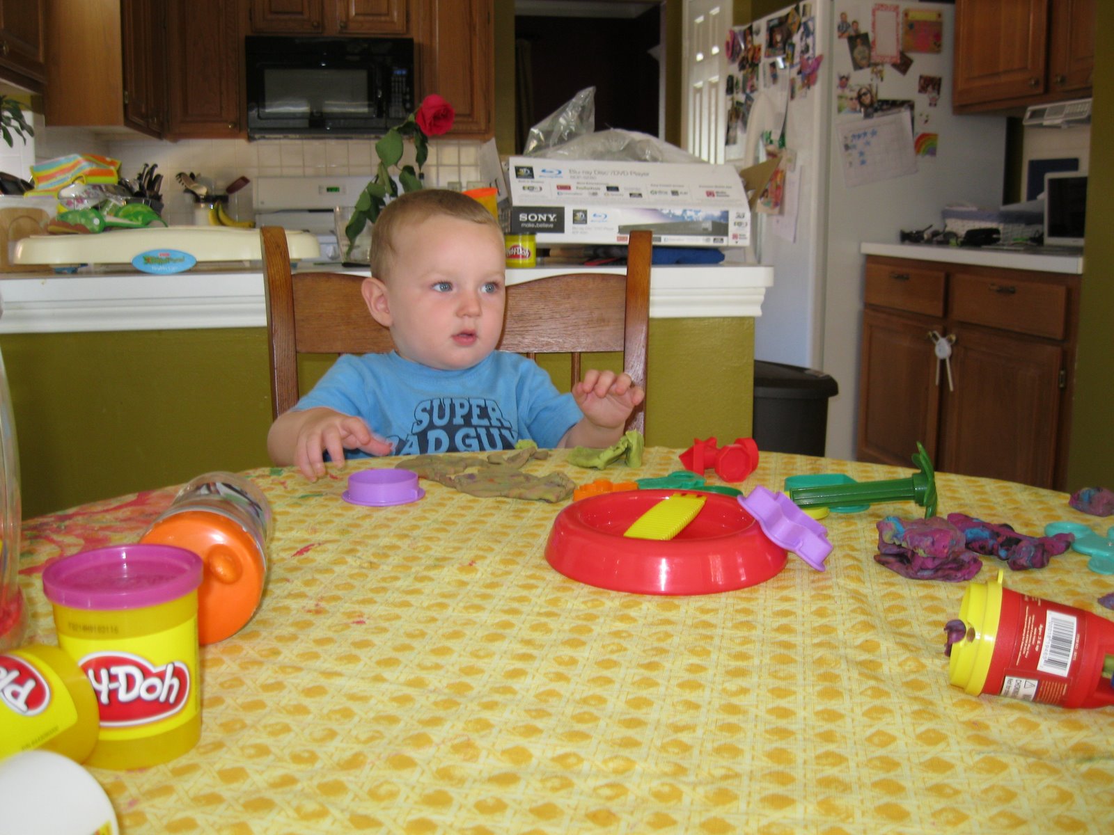 Dylan is starting to figure out how to make shapes with the play-doh. Lily is a seasoned pro.